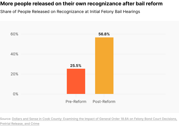 Source: Dollars and Sense in Cook County: Examining the Impact of General Order 18.8A on Felony Bond Court Decisions, Pretrial Release, and Crime, Don Stemen and David Olson, 2020